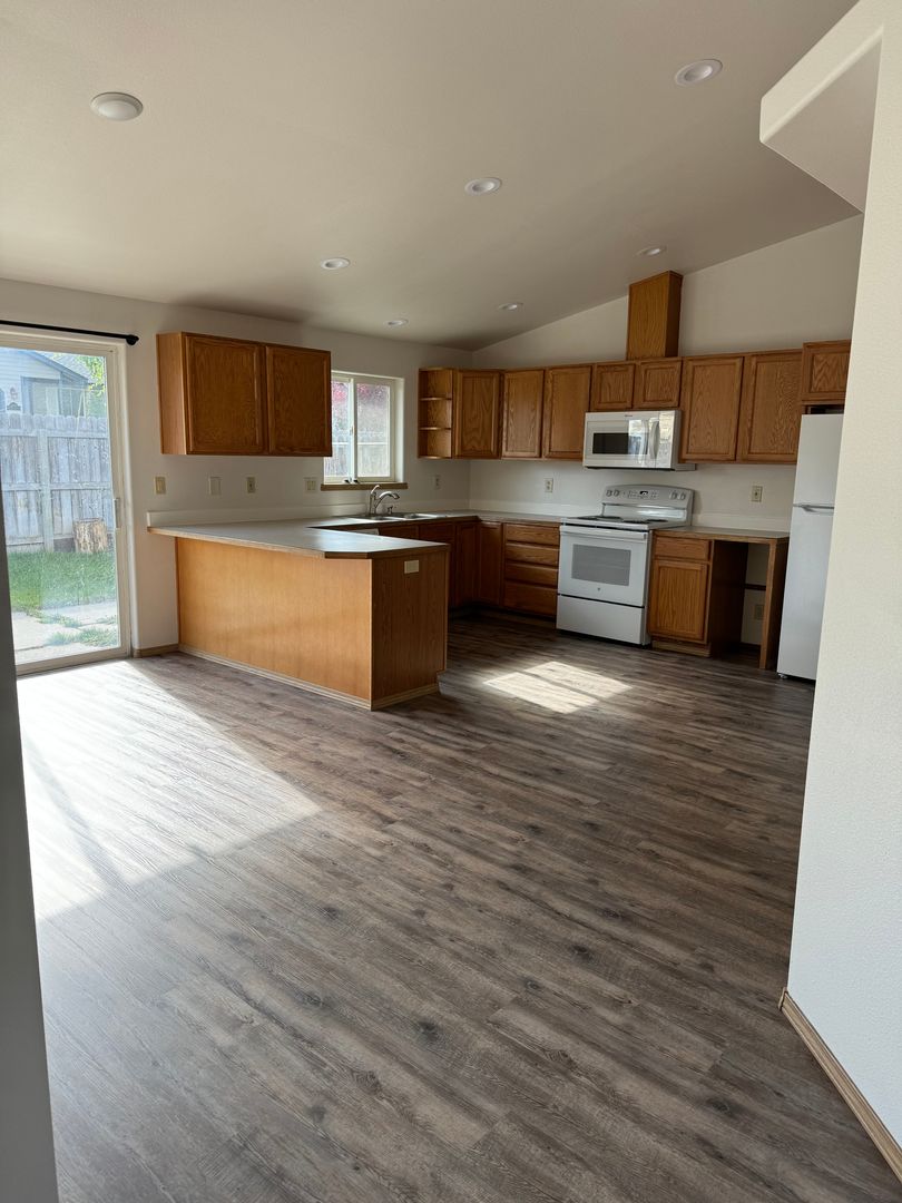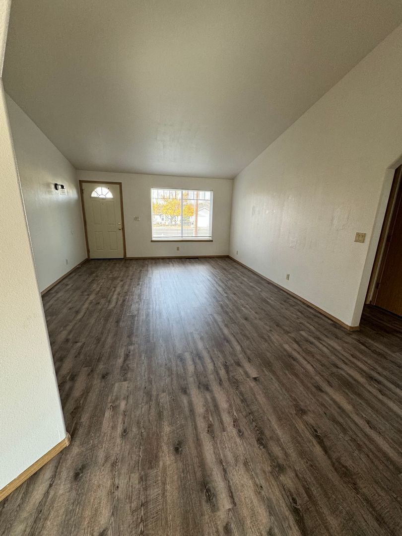 This Duplex offers an open floor plan with vaulted ceilings, huge kitchen with lots of cabinet space and island peninsula. All new flooring, paint and appliances. Fenced in backyard. Heat pump with A/C. Washer/Dryer hook ups. Call for a showing today!